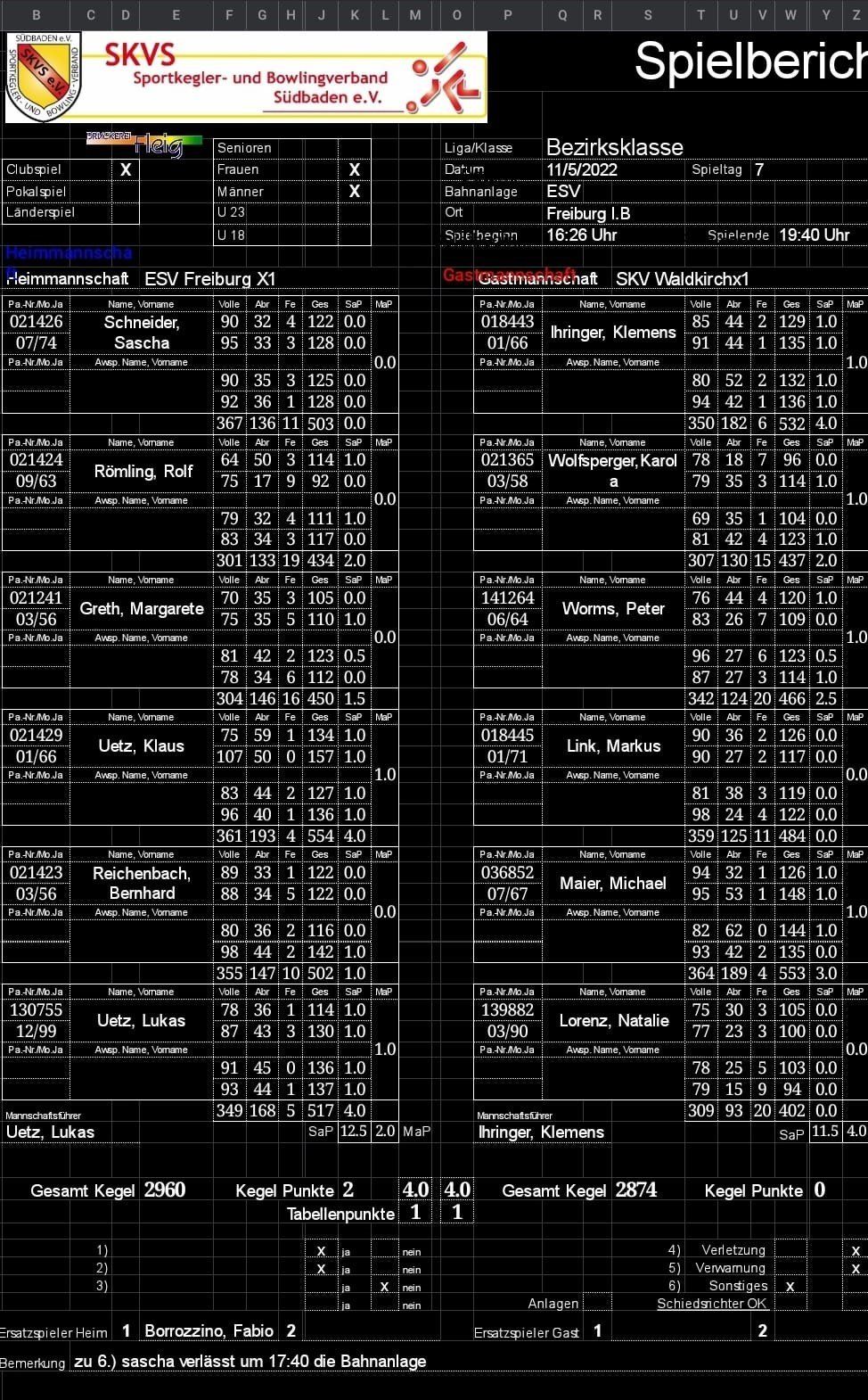 Am 7. Spieltag durfte unsere Mix Mannschaft die Mannschaft vom SKV Waldkirch auf unseren Bahnen begrüßen.